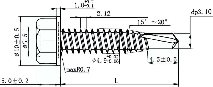 Длина самореза L, мм